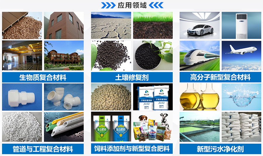 本产品已成功试验可应用于橡胶制品、包装材料、泡沫材料、油漆涂料、汽车配件、电气配件等行业中。