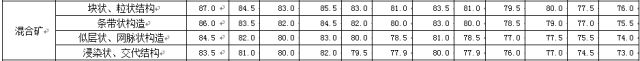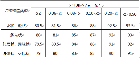根据矿石入选品位和可选难易程度等影响因素,建议最低指标要求分别为40%-88%(详见表4)。